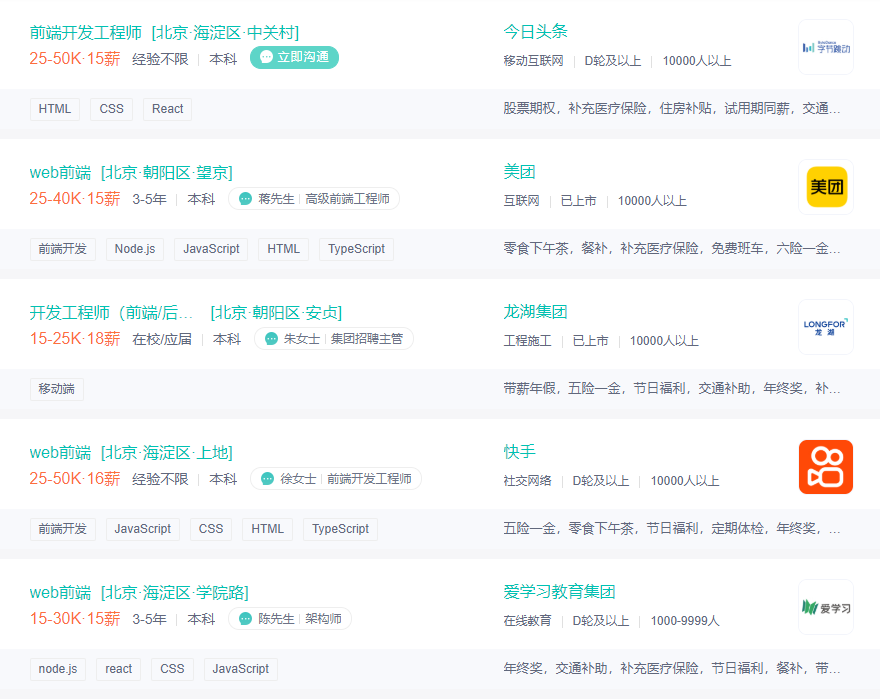 下面,我们从职位招聘角度来看当前前端需求和未来前(钱)景: