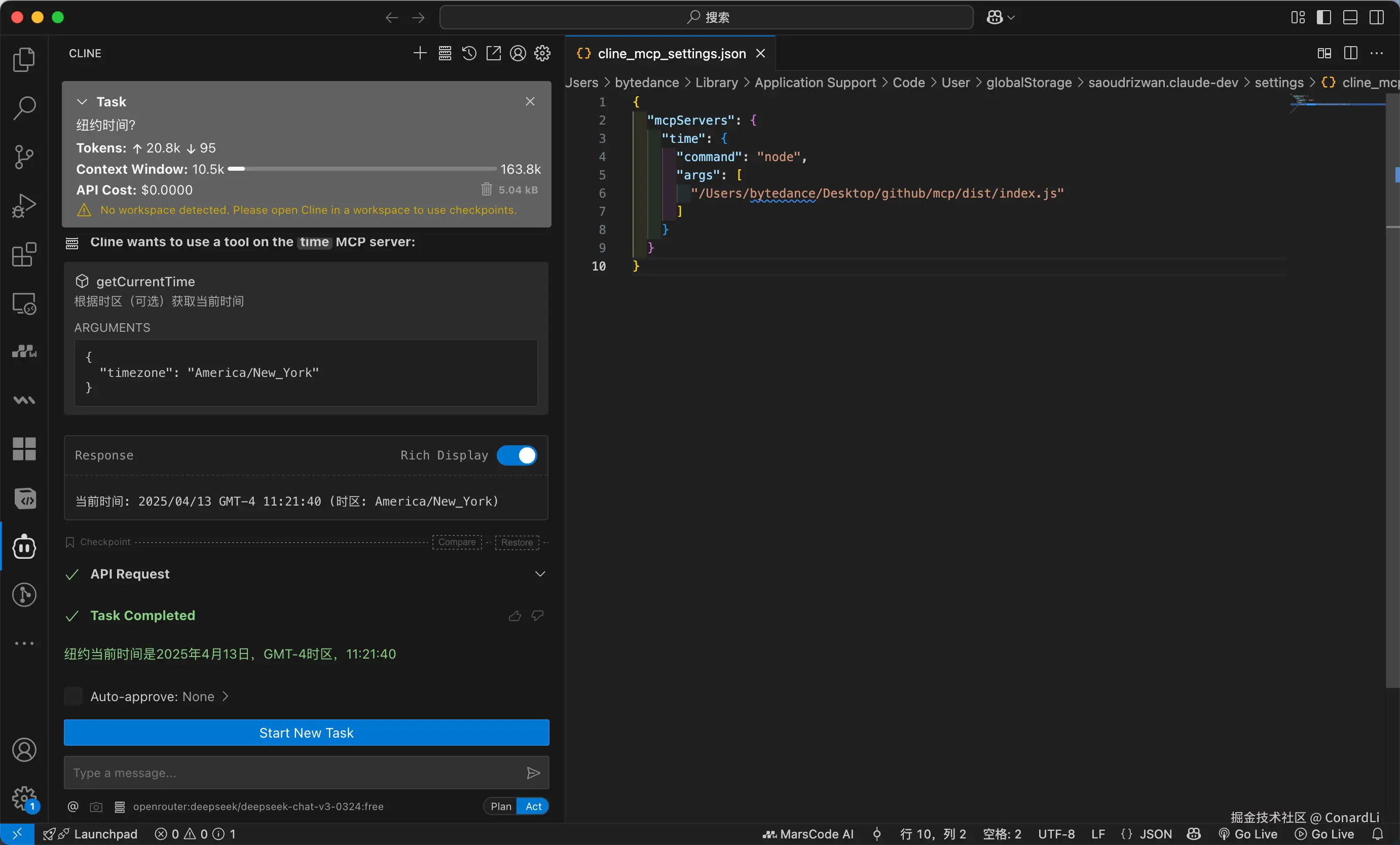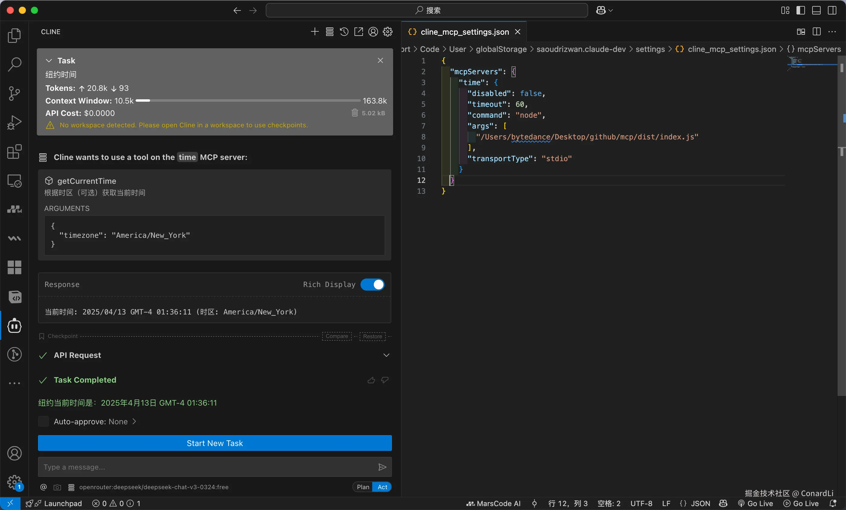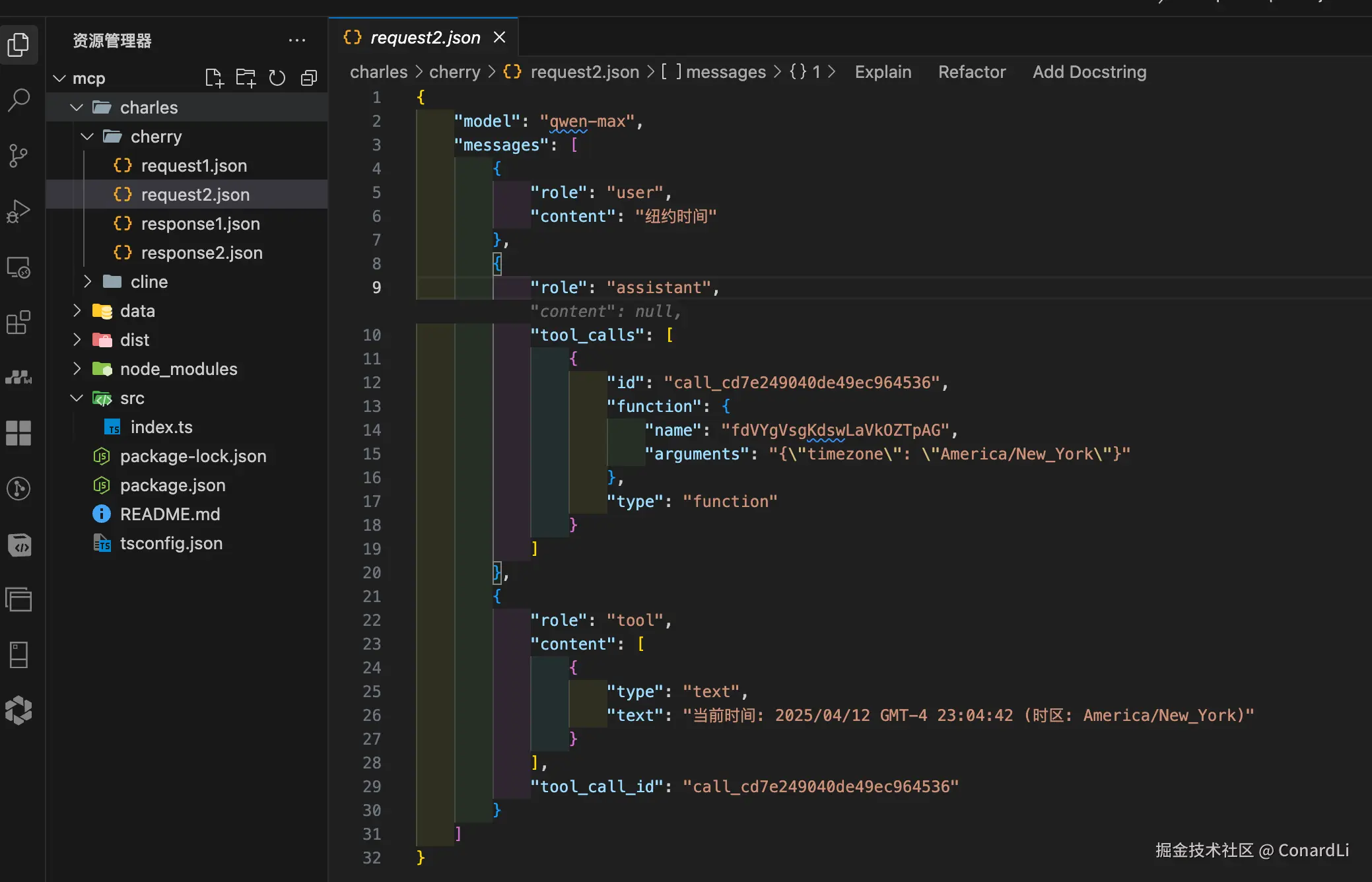 通过分析 MCP Server 的配置,我们了解了 MCP Clinet 和 MCP Server 的通信协议、执行的命令和参数,以及两者数据传输的标准格式,这样 MCP Clinet 和 MCP Server 的交互方式我们基本上就弄清楚了。