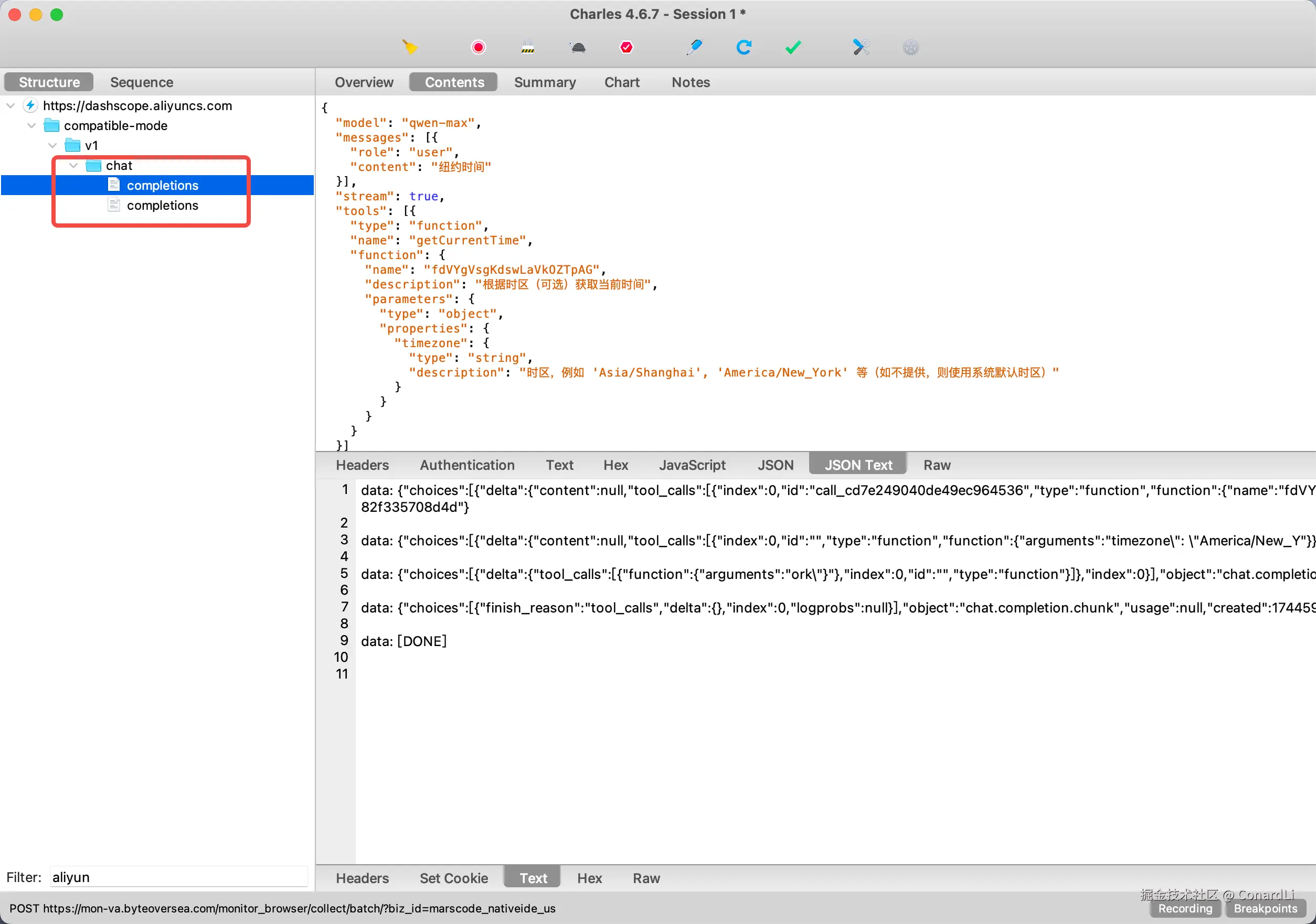 [2] [LLM Response]:模型根据用户输入 + 支持的参数列表判断需要使用的工具,并通过 tool_calls 字段返回: