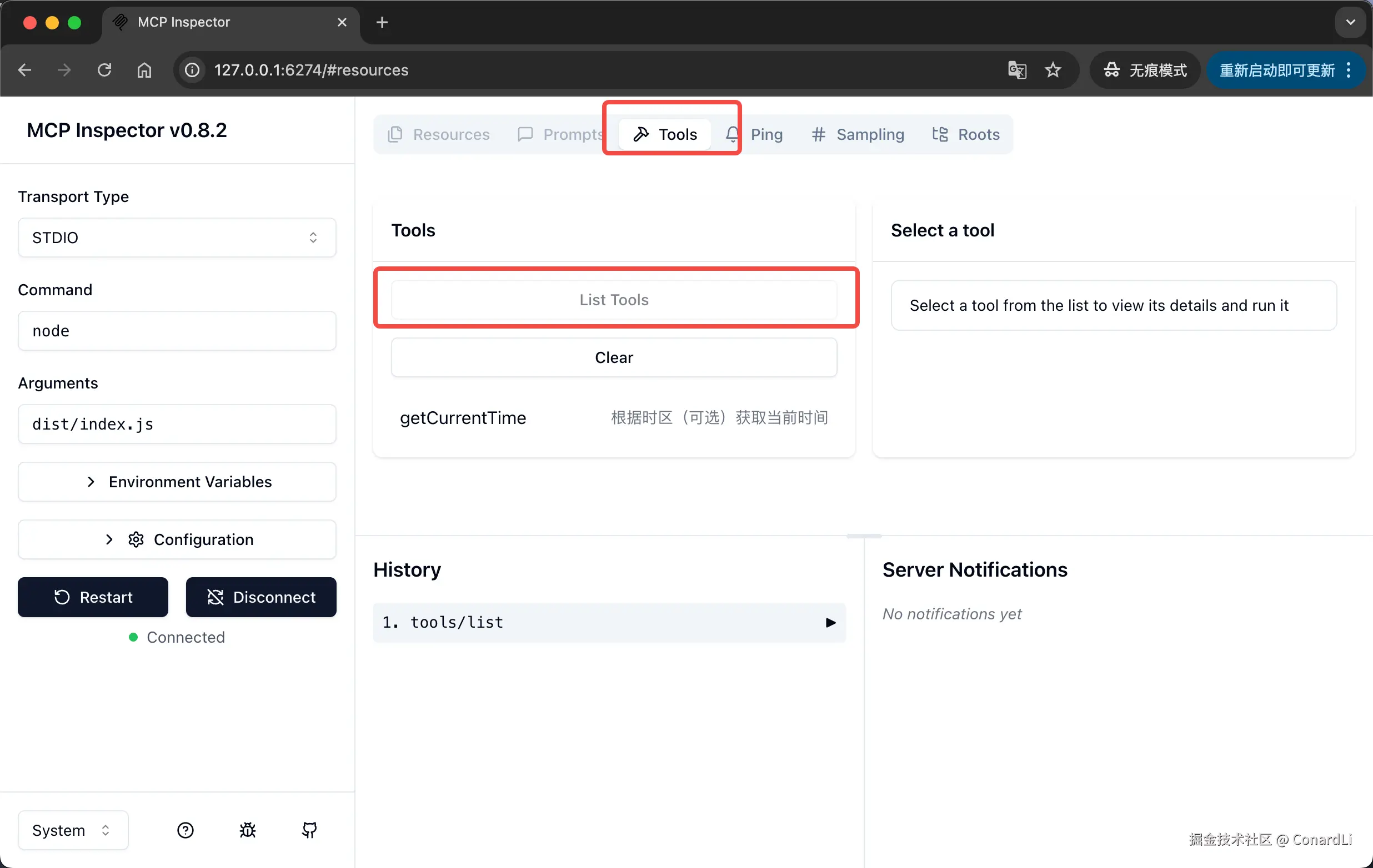 [0] [GET Tools]:在客户端初始化时,拉取当前配置的 MCP Server 下提供的所有工具列表: