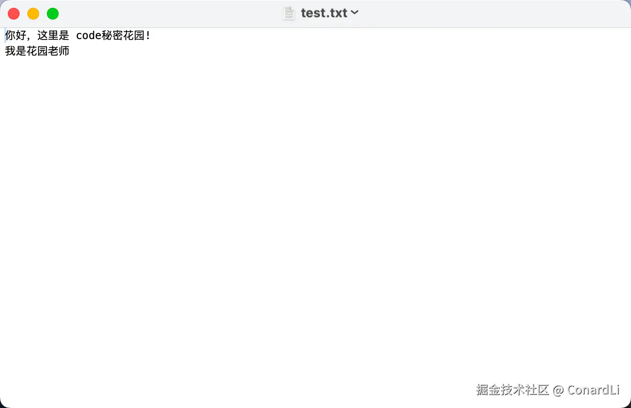 上述命令执行后,test.txt 文件里会包含你输入的两行内容: