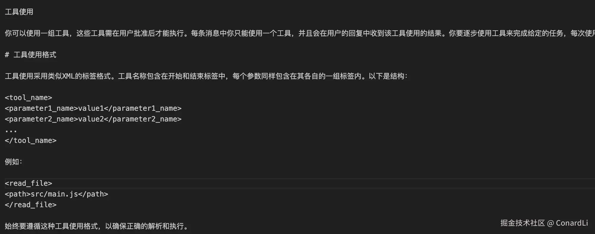 LLMService 通过 LLM_API 调用大语言模型时,在请求中直接携带 工具schema(结构化工具定义,如参数格式、调用格式),告知模型可用工具的调用方式。 - 方式2(系统提示词嵌入):