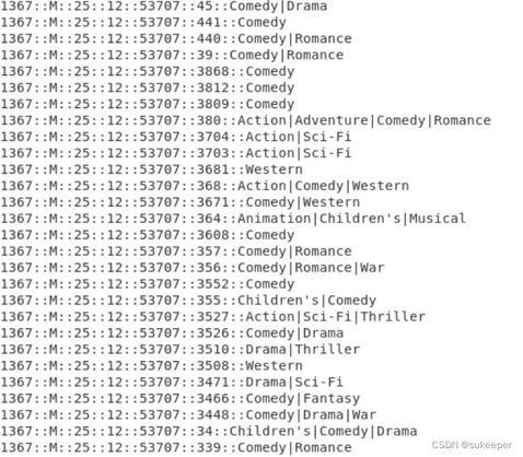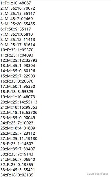 本过程使用到三份数据,分别为用户对电影的评分数据ratings.dat、已知用户性别的用户数据users.dat、电影信息数据movies.dat。
