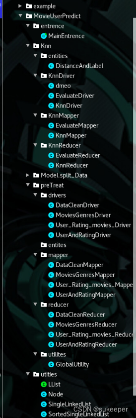 这里使用MapReducer编程,利用KNN算法对已知性别的用户观看的电影类型统计和建立分类器,并且对这个分类器的分类结果进行评估,选出分类性能最好的一个分类器,用于对未知性别的用户进行分类。