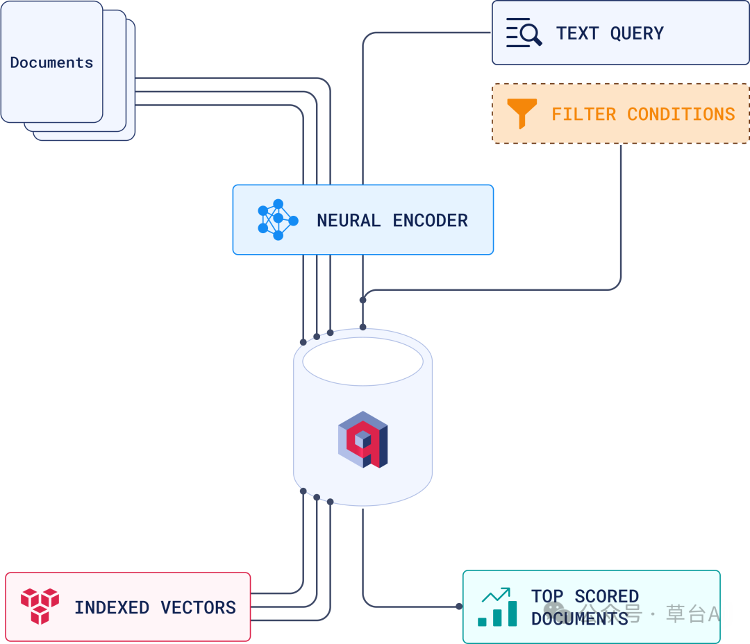 • 数据以向量形式存储,捕捉语义和上下文。