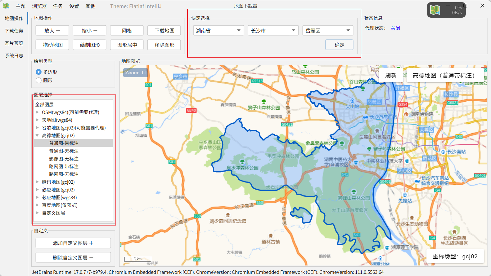 https://gitee.com/CrimsonHu/java_map_download#https://gitee.com/link?target=https%3A%2F%2Fpan.baidu.com%2Fs%2F1CA7sdH6zL4OjJxVydKwrWQ在软件中选择想要的图层和地图区域,地图区域也可以自己绘制图形选取