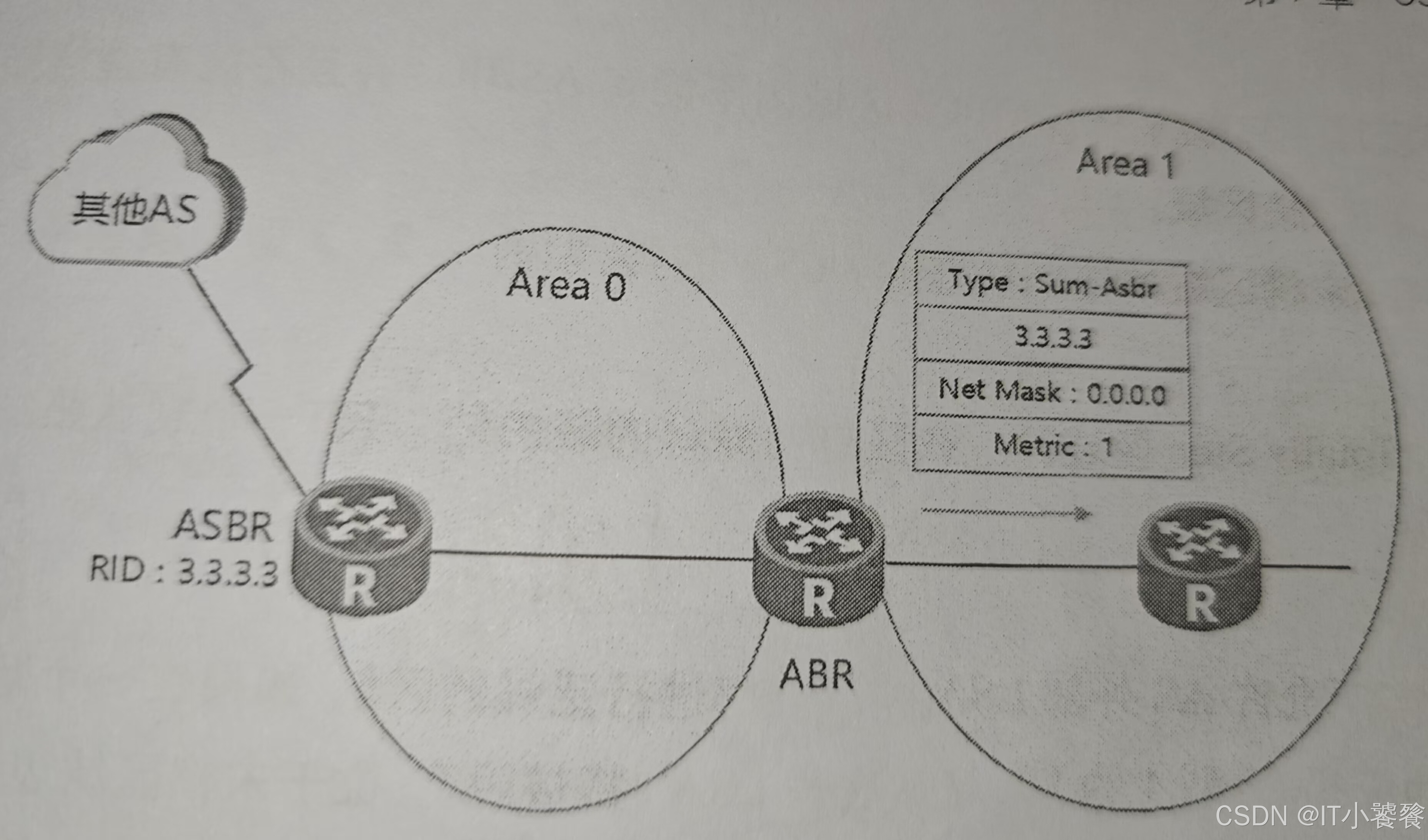 ASBR汇总LSA(ASBR SummaryLSA),也是由ABR路由器产生的,通告给骨干区域和标准区域不能进入 Stub 区域、Totally Stub 区域、NSSA 区域和 Totally NSSA 区域。