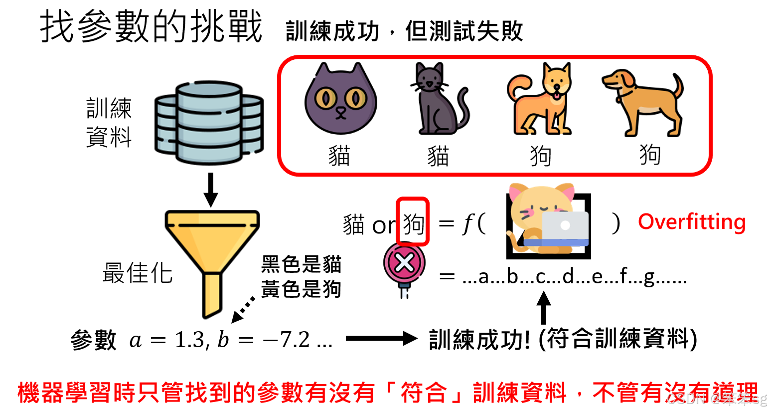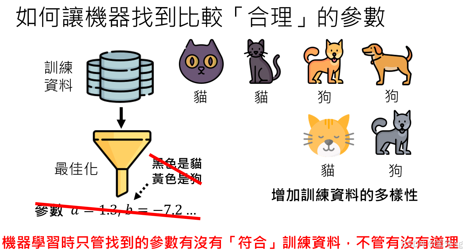 机器只认训练数据:训练过程只关注参数是否符合训练数据的限制,不会考虑参数的逻辑性或泛化性。