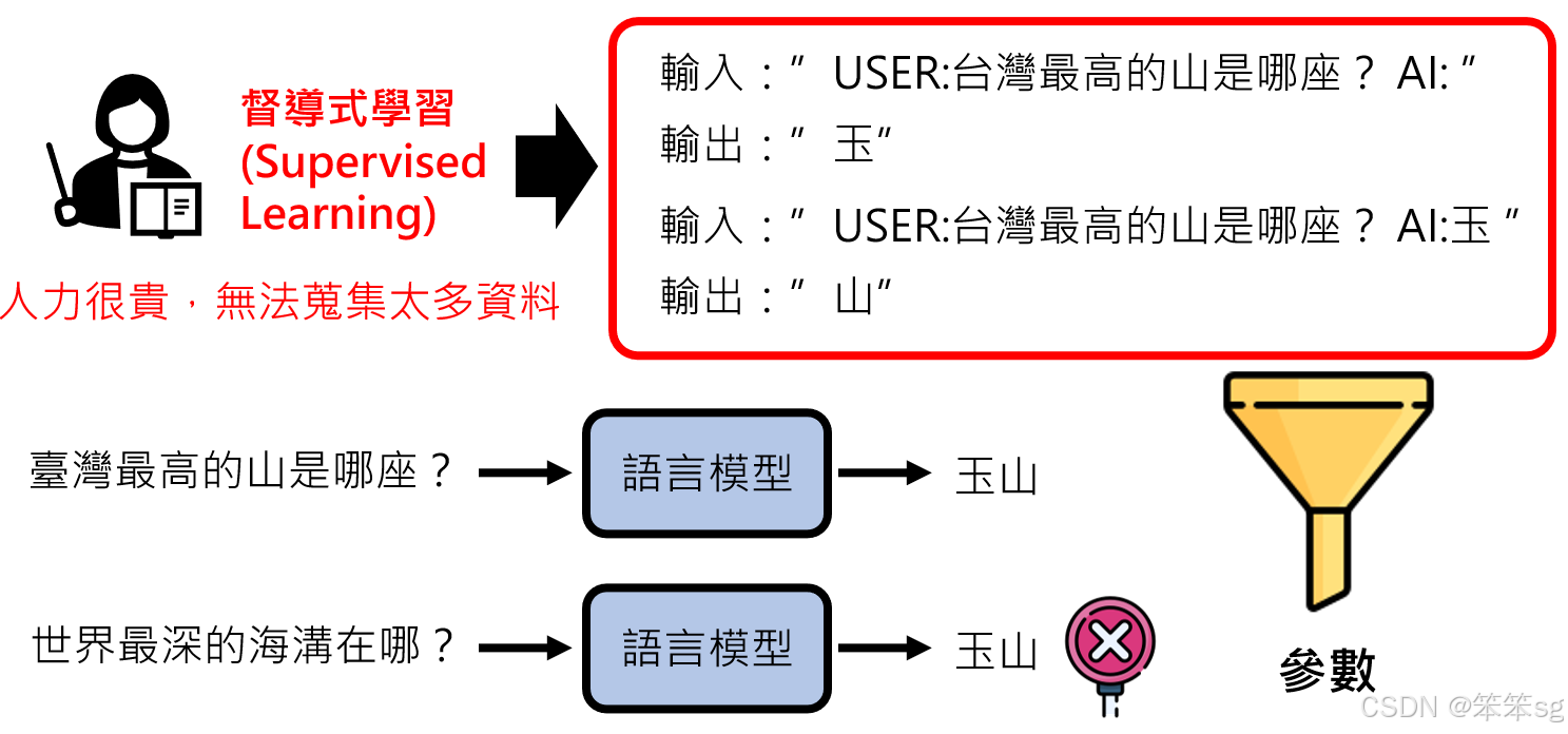 - 实际做法是通过网络爬虫抓取这些网页内容,并从中提取出句子。将这些句子整理成可以用于训练“文字接龙”的格式,例如将句子分解为可预测的部分:如“人工智慧真神奇”可以整理为“人工 -> 智 -> 会 -> 人工智慧”。