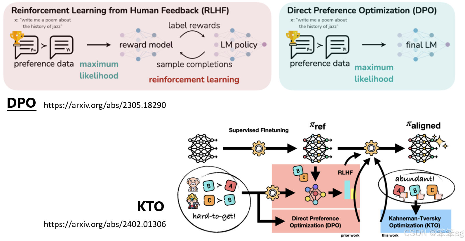 - 优点:KTO能够有效地传递知识,并通过优化知识转移的方式来提高模型在特定任务上的表现,而不必完全依赖虚拟人类的反馈。