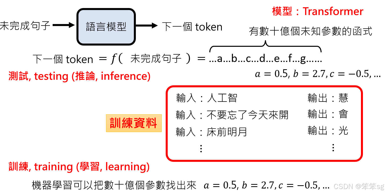 机器在训练过程中需要借助训练资料来调整数十亿个参数,这个过程是自动完成的。