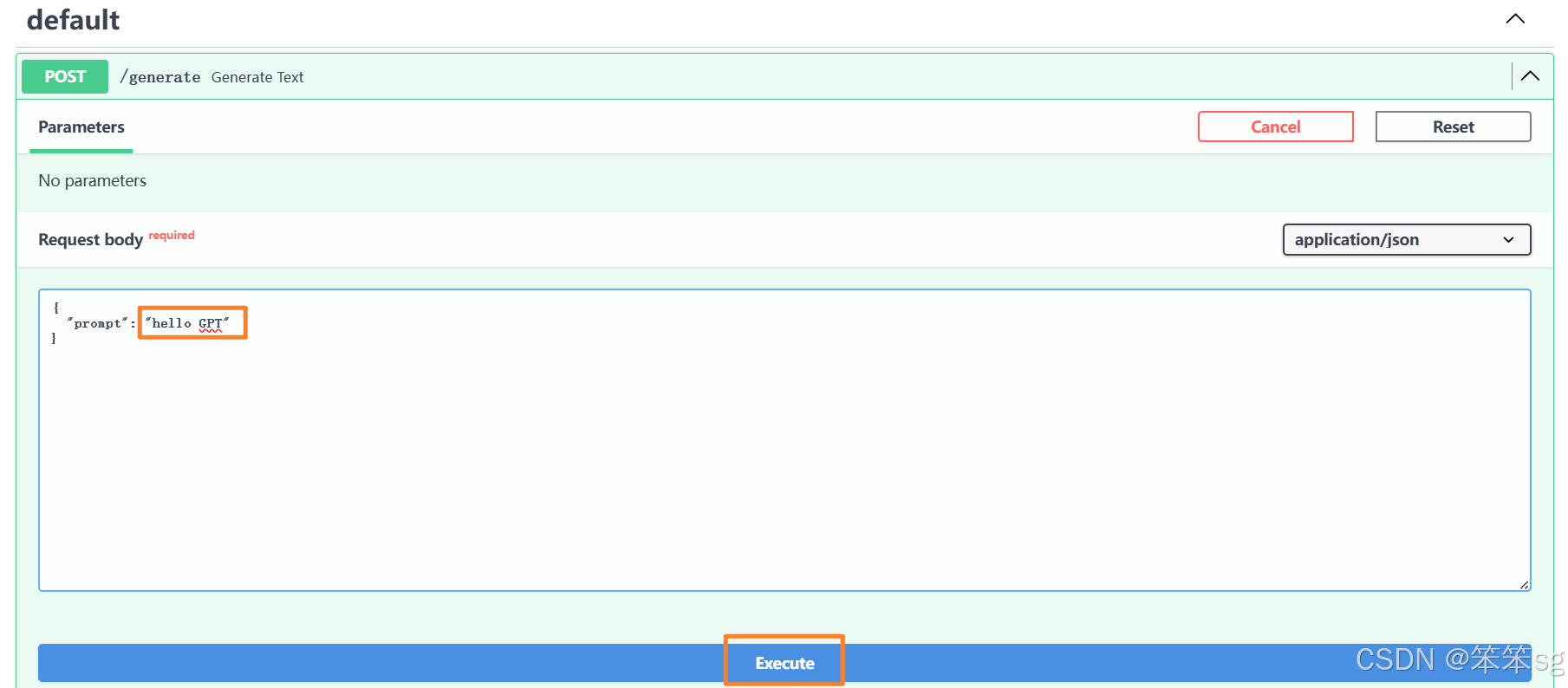 在 Request body 部分修改你的 prompt,然后点击 Execute:
