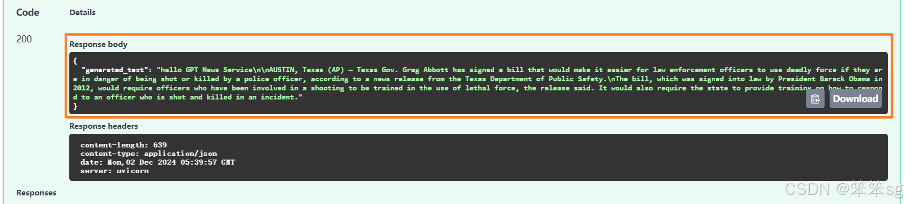 通过以上步骤,我们成功地部署了一个参数量较小的语言模型 distilgpt2,并将其封装为 API 服务,你可以根据实际需求决定使用 FastAPI 还是 Flask。