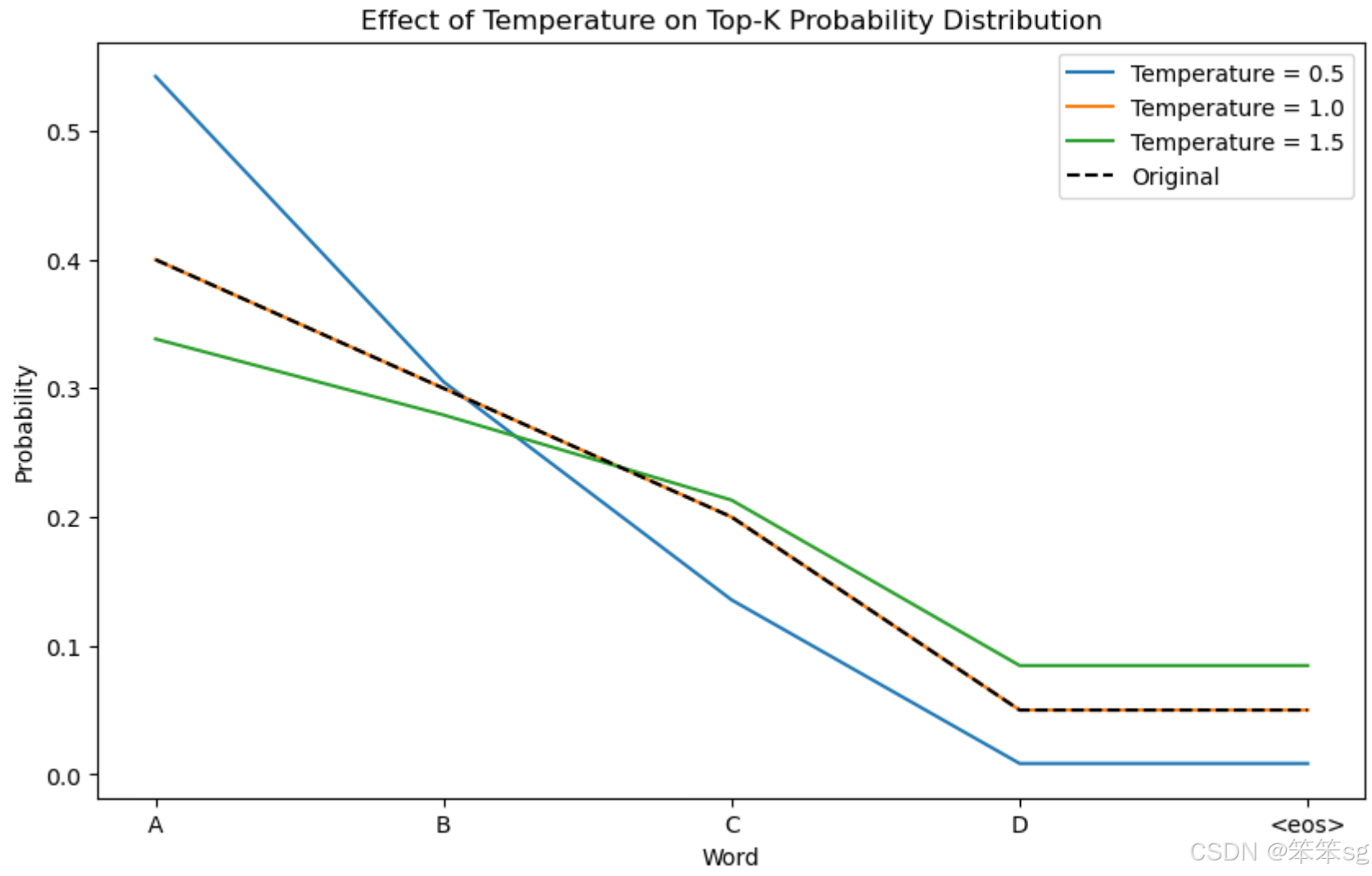 在进行采样前,模型实际上会对概率分布应用温度调整: