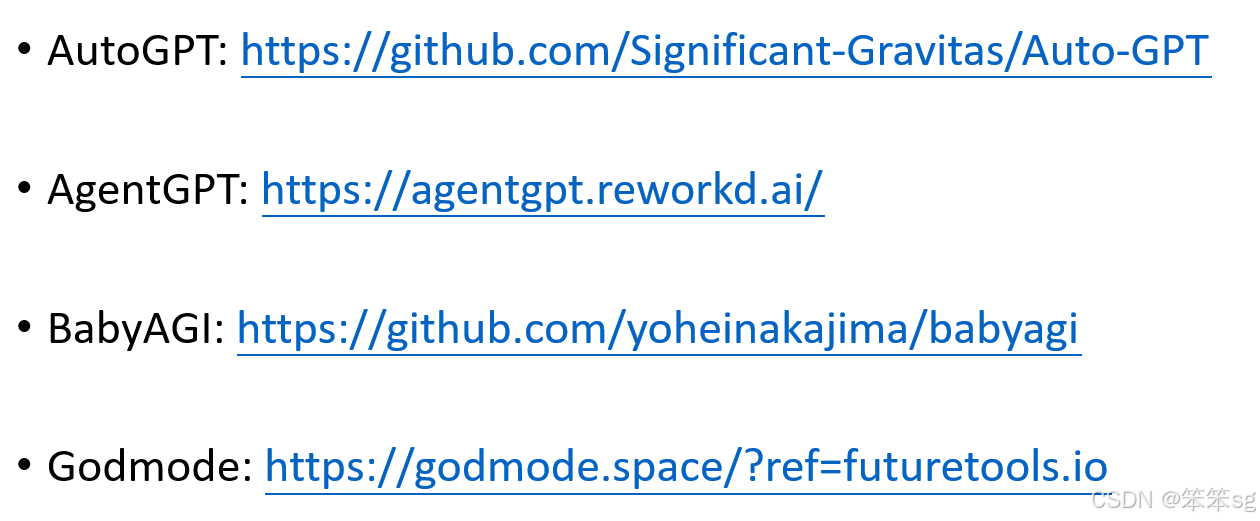 下面是几种现有的AI agent,其中最知名的可能是AutoGPT。AutoGPT能够接受任务指令,比如“帮我做个网页”,然后它会自动进行任务执行,可能会上网搜索、使用工具、进行自我反思等。然而,尽管AutoGPT具有一定的能力,但它并不总是能够成功完成任务。有些用户曾给它指令,放任其自行操作,结果可能会花费大量时间而没有任何成果,甚至在某些情况下,造成资源浪费。
