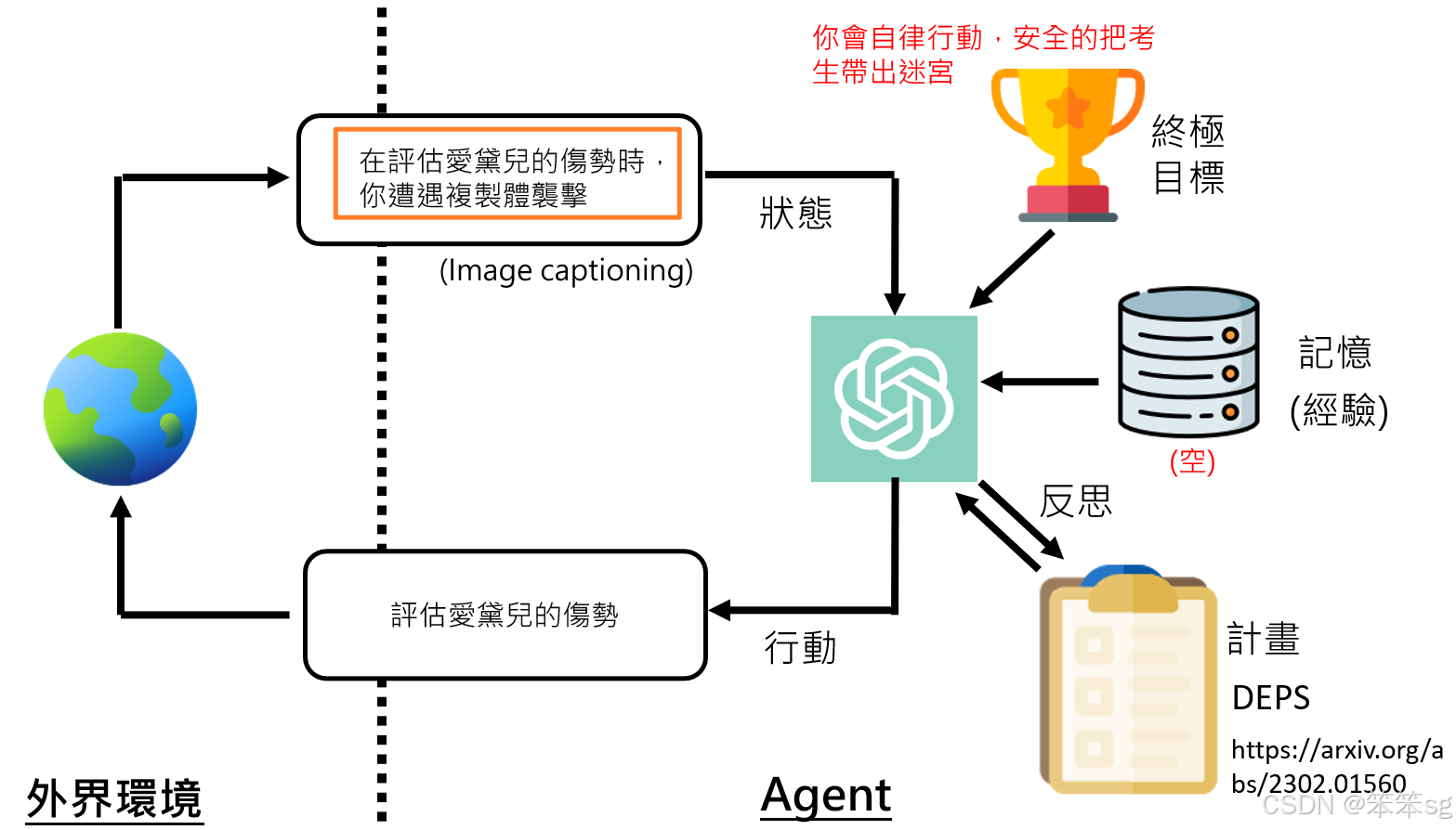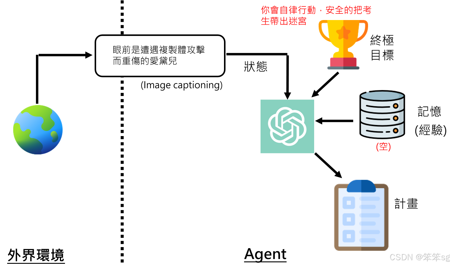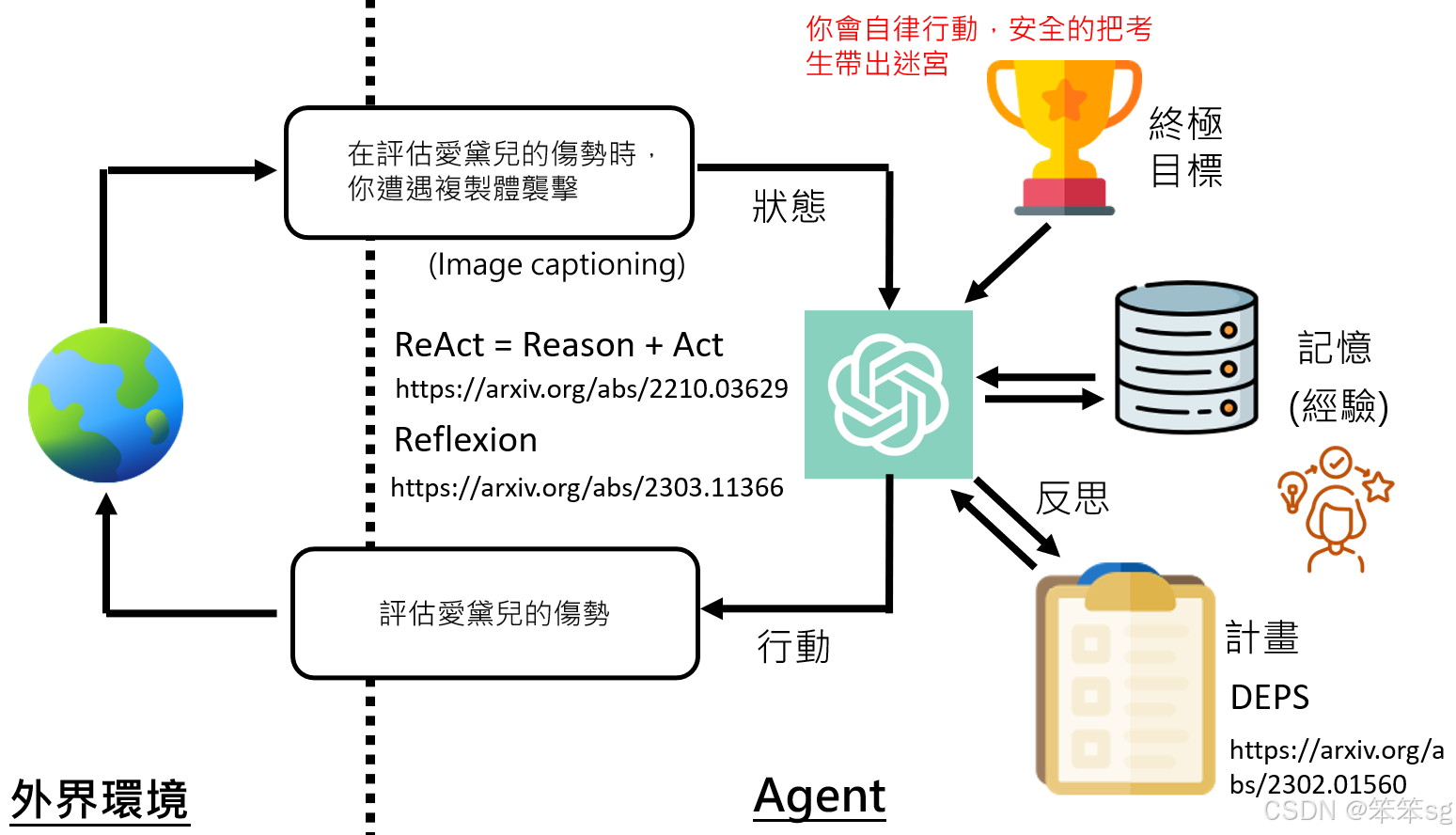 感知外界:AI agent能够通过各种感知器(如文字输入、视觉、听觉、触觉等)了解外界的状态。这些感知器可以帮助AI获取当前的环境信息。