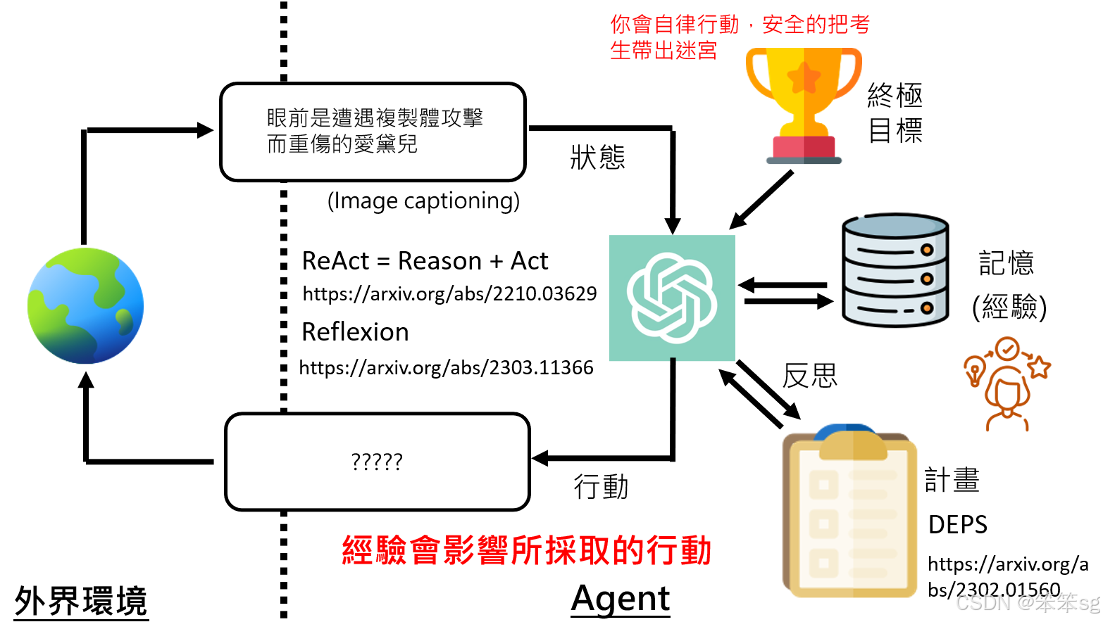 - 计划的动态调整:当环境状态变化时,格列姆的行动计划必须做出相应调整。这要求AI代理不仅能生成固定的行动计划,还能实时分析并应对新的挑战。反思机制在这一过程中非常关键,它帮助AI在执行任务后从经验中学习,从而改善未来的决策。