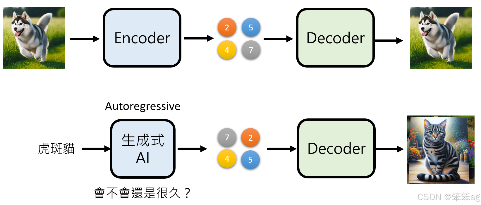 - 然后,AR模型生成的是这个压缩后的版本,而不是原始的高维图像。