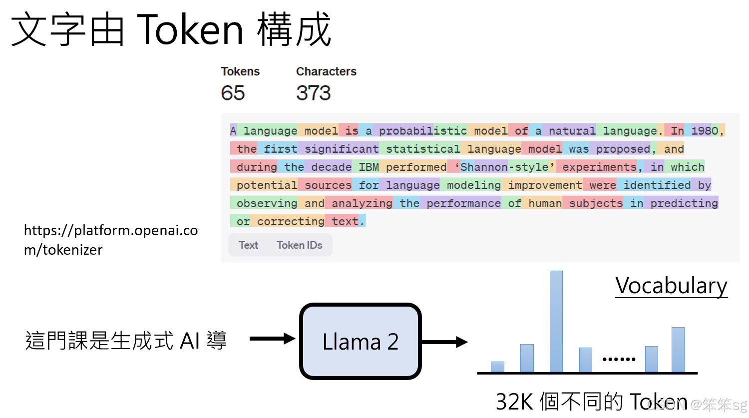 - 例如:LLaMA 2 的 vocabulary 包含 32,000 个 token。