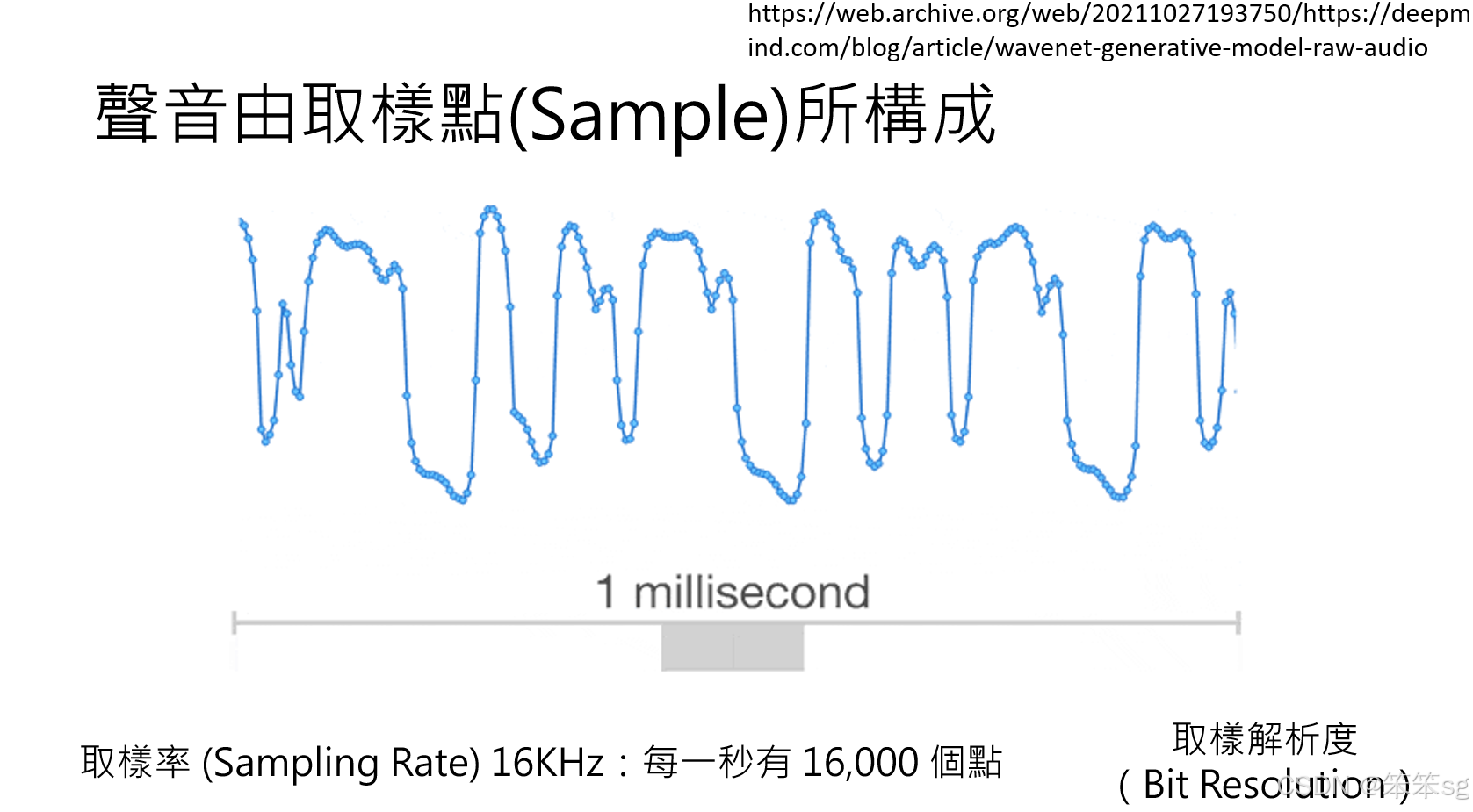 - 例如,16K 采样率表示每秒有 16,000 个采样点。