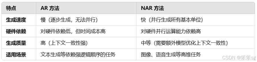 NAR(Non-Auto-Regressive)生成方式在图像生成中可能带来加速,但在文字生成中却面临一些挑战,主要是与生成结果的质量和一致性相关。