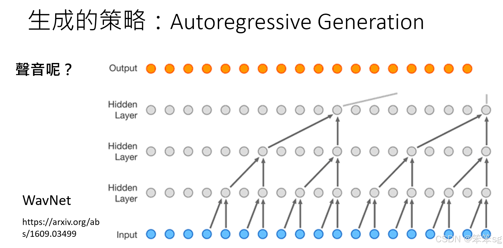 - Parallel WaveNet 等直接并行生成所有 sample,实现实时语音生成。
