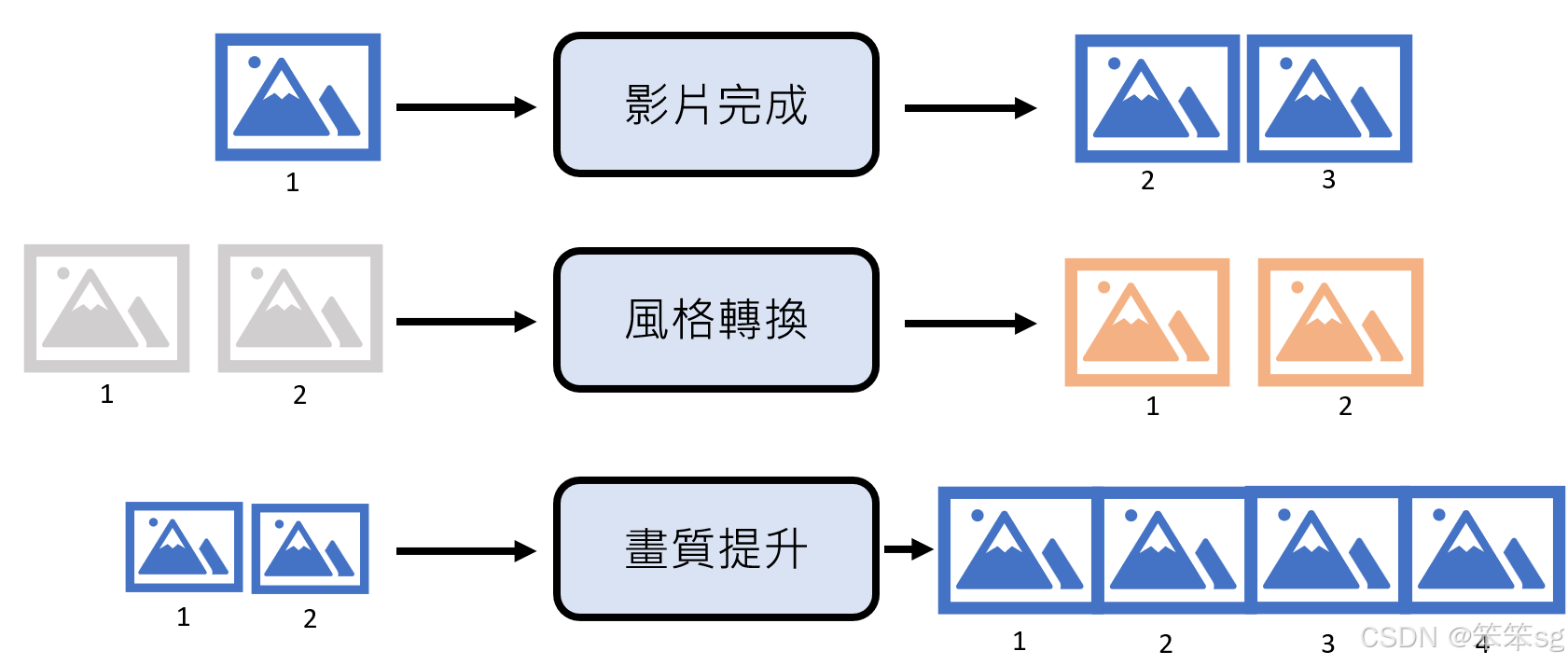 - AI 可将影片风格进行转换,例如将黑白影片上色。