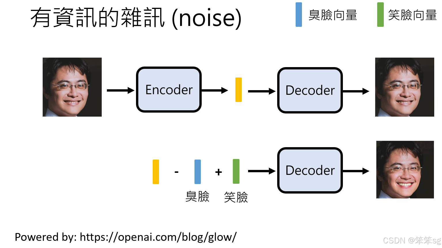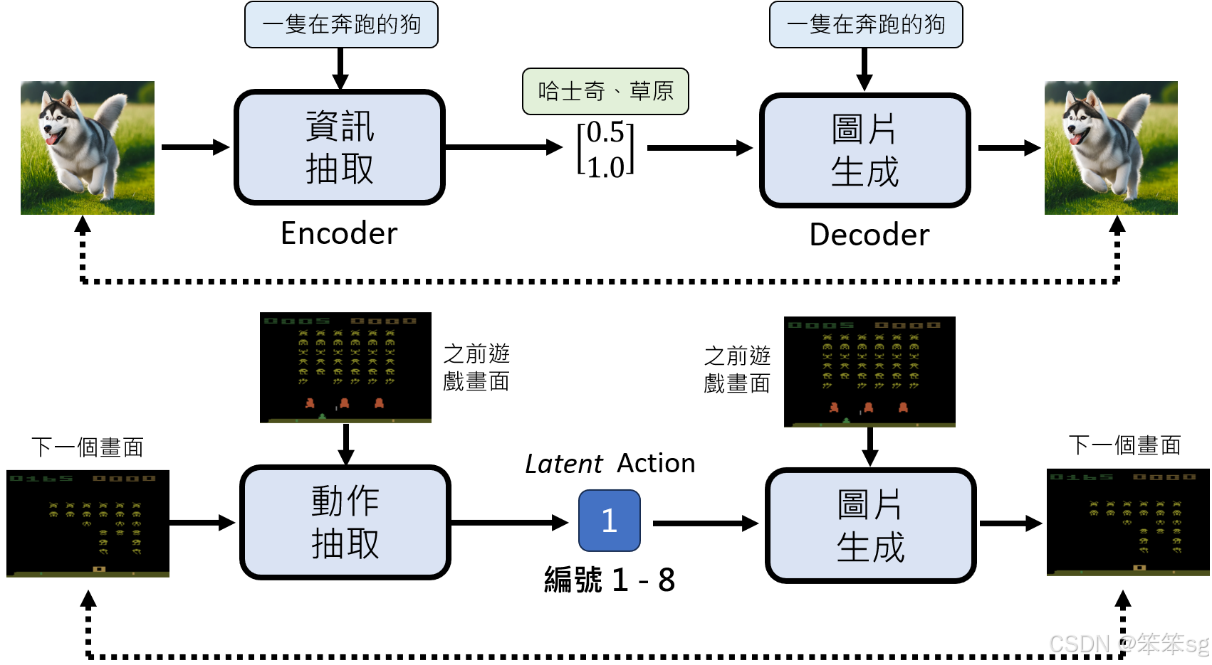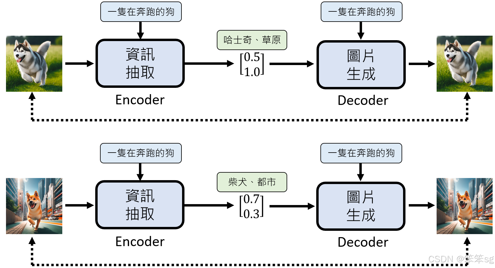- Encoder 和 Decoder:在 VAE 和 Flow-based model 中,编码器(Encoder)负责将输入(如图像)映射到潜在空间(latent space)中,而解码器(Decoder)则负责从潜在空间生成图像。
