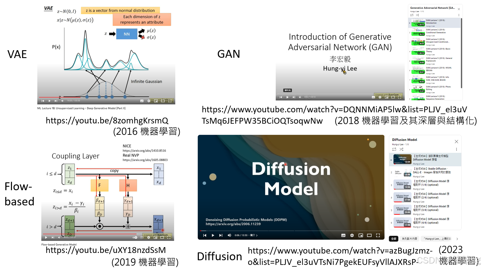 可以参见李老师的Youtube频道,以下是李老师讲述的经典图像生成模型的过程: