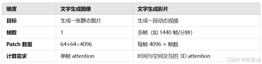 - 多次去噪:与图像生成一样,视频生成中的每个帧也会经历几百次甚至几千次的去噪操作,最终得到清晰且符合描述的帧序列。
