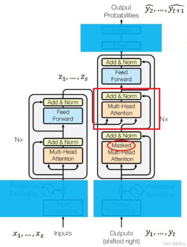 - 在Transformer中,解码器的嵌入层和输出线性层是共享权重的——输出线性层表示的线性变换是嵌入层的逆变换,其目的是把网络输出的嵌入再转换回one-hot向量。