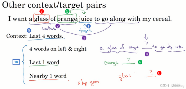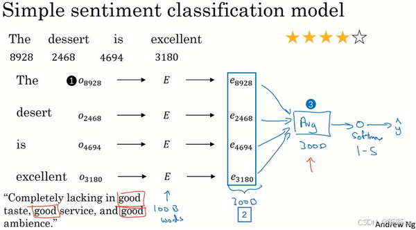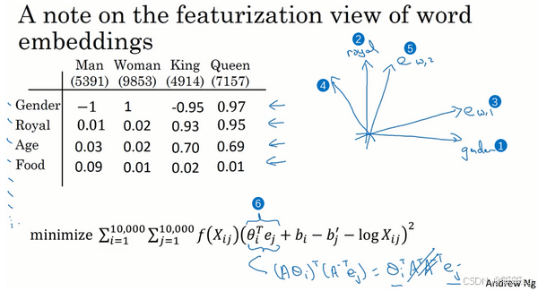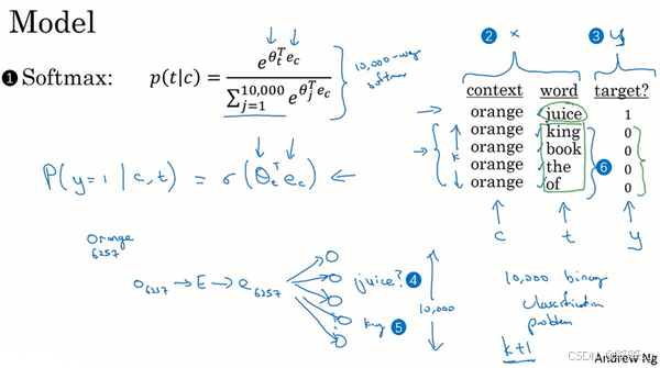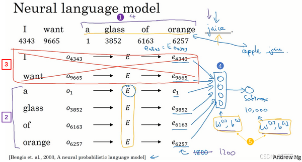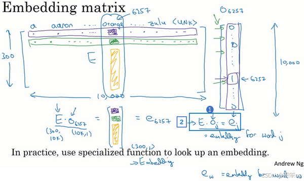 其中,E是词嵌入矩阵,也就是每个单词的词嵌入的数组;