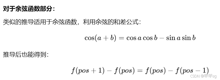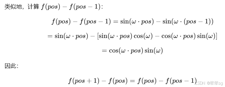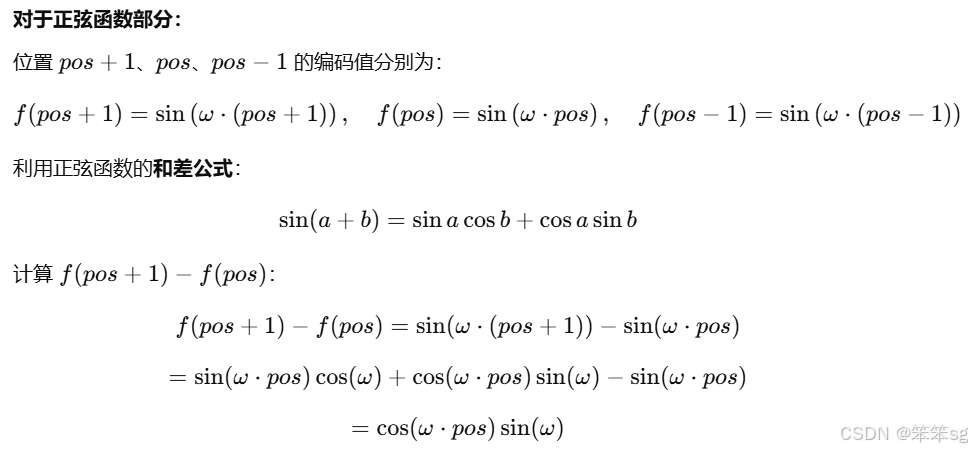 - 对于向量的同一个维度处,不同pos的编码不同。且pos间要满足相对关系,即