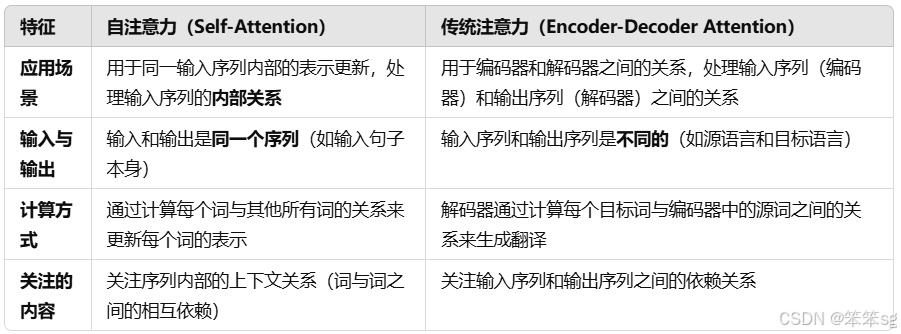 Transformer:计算每个词的表示时,都会根据 所有词 的表示来更新它。每个词的表示不再依赖于前一个词的计算结果,而是通过注意力机制从输入序列的其他所有词中获取信息。