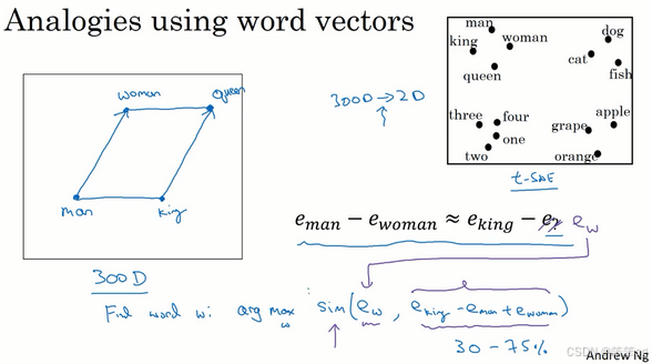 词向量的一个重要性质就是,这个向量在高维空间中的位置关系即可代表语义的关系。比如相似的词可能会聚拢在一起,甚至“法国“与”巴黎”的距离和”英国”与”伦敦”之间的距离都是相似的。