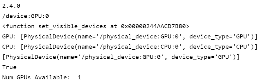 - print("Num GPUs Available: ", len(tf.config.experimental.list_physical_devices("GPU")))
