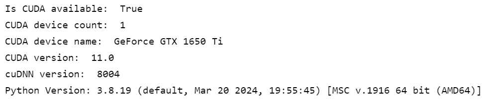 如果显示如下结果,就代表pytorch下GPU训练环境你已经配置好了
