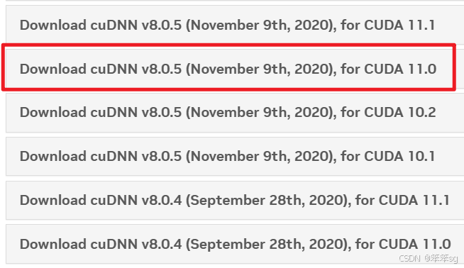直接去官网找cudatoolkit11.0对应的cudnn版本(注意我这里指的是以8.0开头的,大方向不能错):