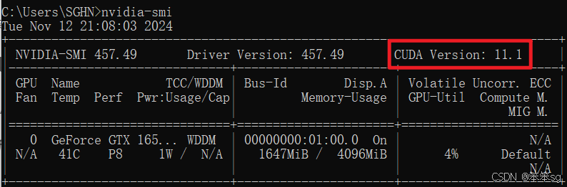 CUDA Version:11.1代表你所能下载的最高cudatoolkit版本。