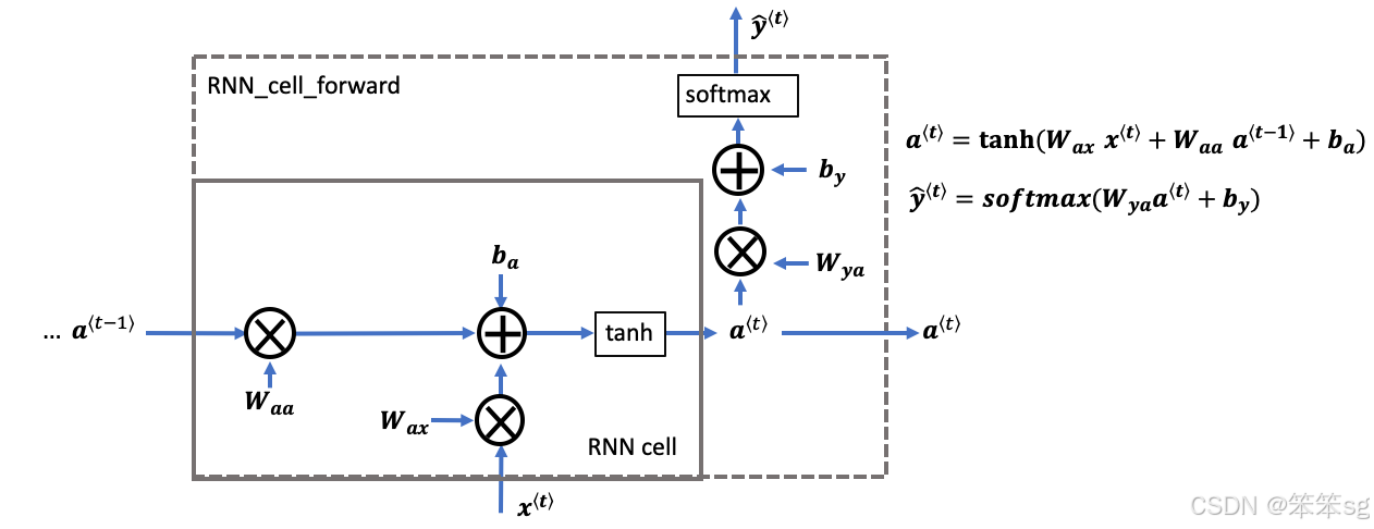 1. 实现RNN一个时间步长所需的计算。