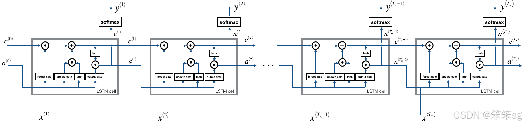 - for t in range(T_x):