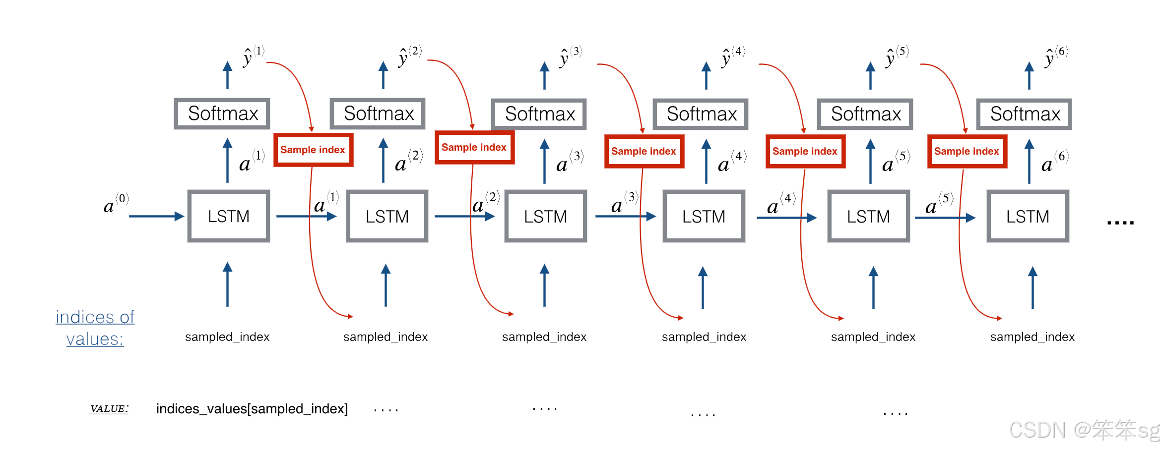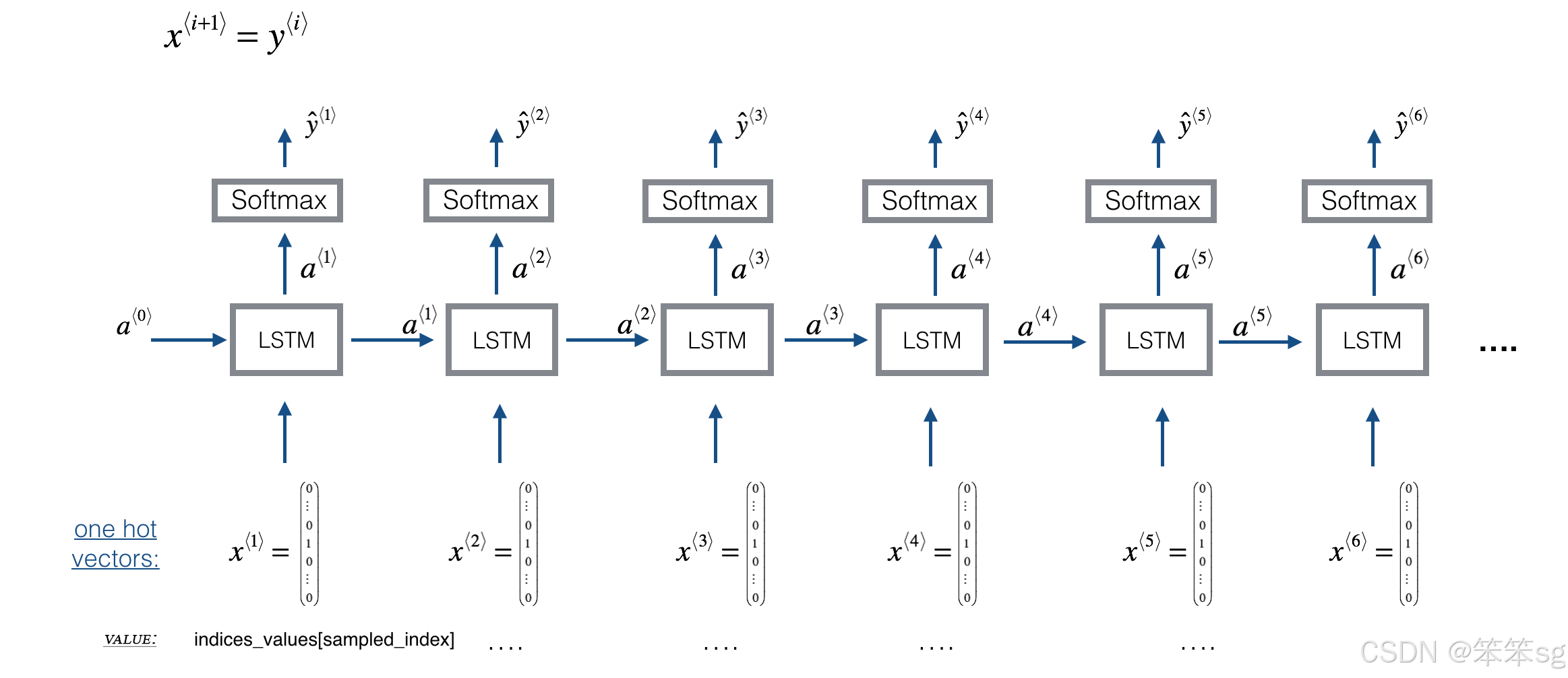 - yt_pred = softmax( np.dot(Wya,a_next) + by)