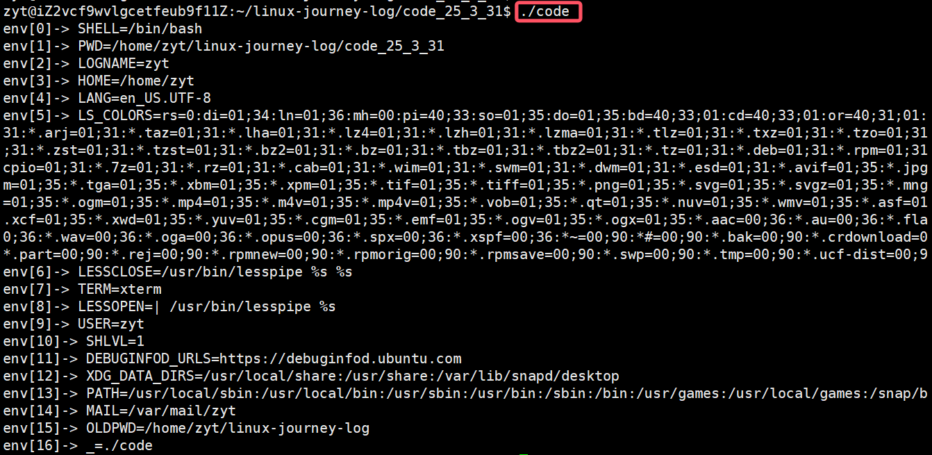 - zyt@iZ2vcf9wvlgcetfeub9f11Z:~/linux-journey-log/code_25_3_31$ echo $PATH