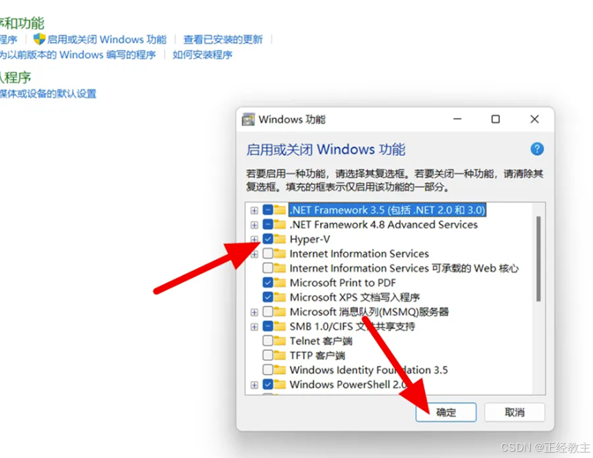 如果没有看到Hyper-V,小编我windows11家庭版就没有,则需要首先按以下方式配置。