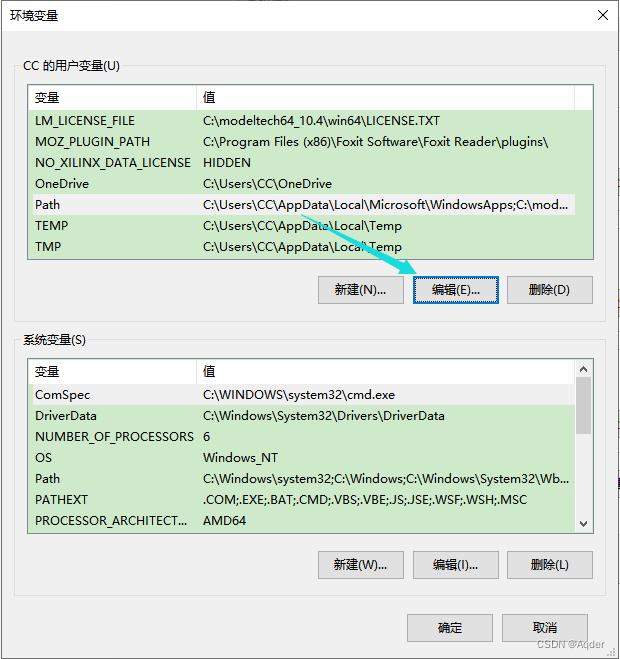 此处装在了C盘,根据实际安装路径添加bin文件至path中。添加完成后一路“确定”退出环境配置。