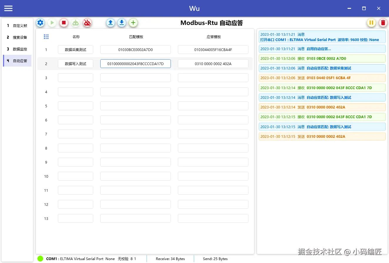 设置好匹配模板和应答模板,接收到数据与匹配模板相同时将自动发送应答模板
