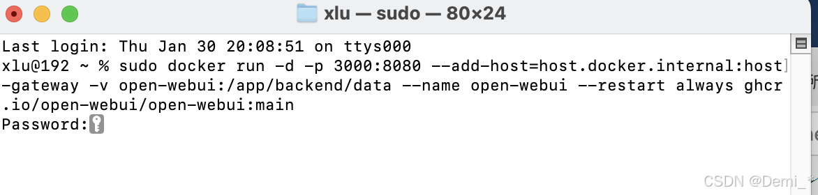sudo docker run -d -p 3000:8080 --add-host=host.docker.internal:host-gateway -v open-webui:/app/backend/data --name open-webui --restart always ghcr.io/open-webui/open-webui:main