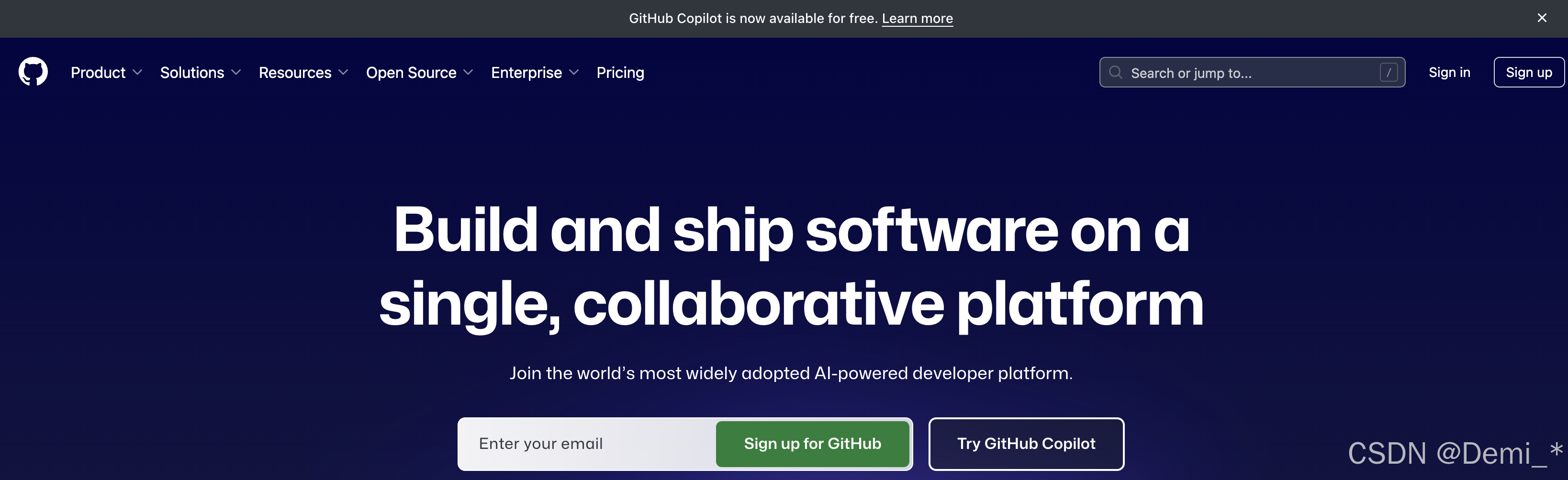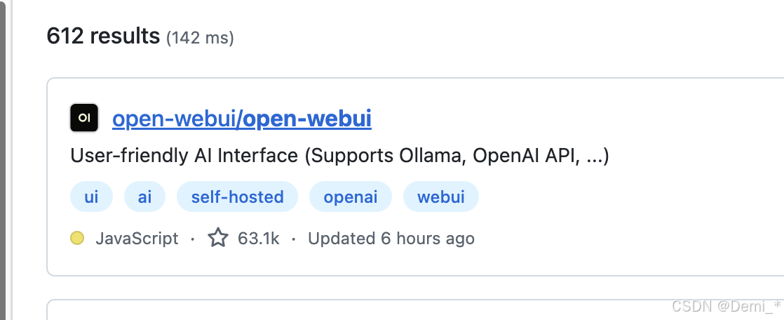 - 进入Github官网,可以从刚刚Ollama左上角第二个选项Github进入(点击小黑猫进入首页),也可以直接搜索进入首页
