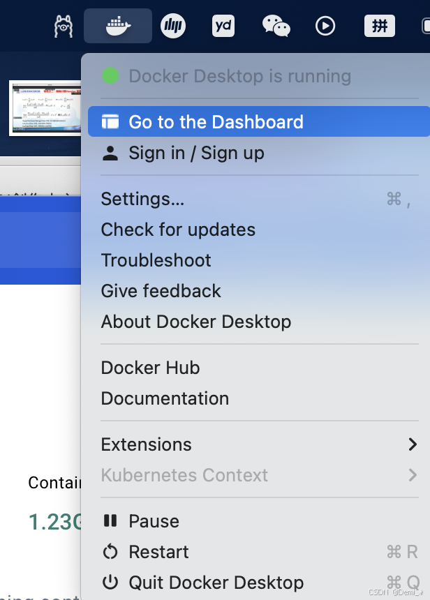 - 到电脑右上角找到小船图标,点击Goto the dashboard
