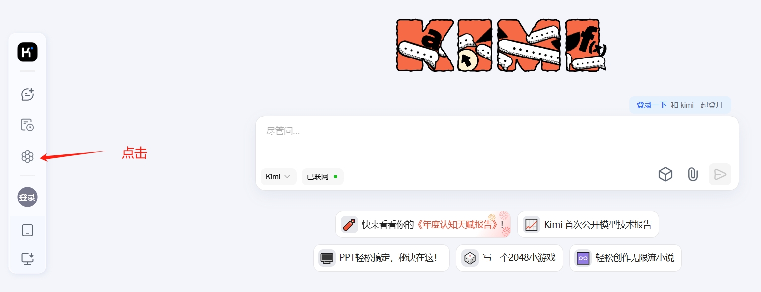 打开Kimi登录 https://kimi.moonshot.cn/(opens new window)